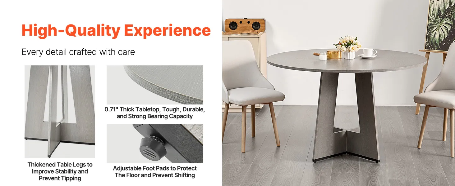 VEVOR Mesa de Comedor Redonda 120 cm de Madera para 2-4 Personas Mesa de Comedor Estilo Rústico para el Ocio con Patas de Madera Gruesas para Oficina, Hogar, Cocina, Sala de Estar, Gris, Solo Mesa