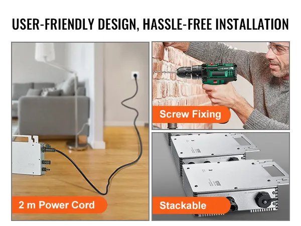 Con un cuerpo aerodinámico, equipado con un cable de alimentación de 2 m y una cómoda estructura de gancho, la instalación es muy sencilla. Puede apilar varios inversores para escalar su sistema según sus necesidades con una experiencia fácil de usar.