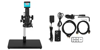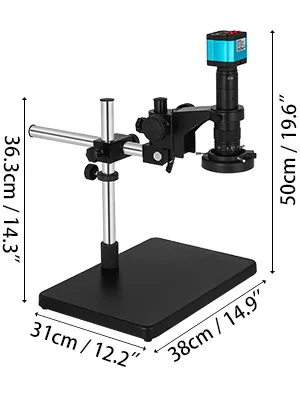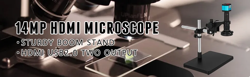 Cámara profesional de microscopio industrial equipada con cámara de 14MP y función de video 720p, que le ayuda a ver y observar el pequeño objeto con claridad. El microscopio avanzado tiene dos interfaces de salida de video, USB y HDMI. El robusto soporte de pluma con diseño de rotación multieje le ayuda a observar cosas de diferentes ángeles. Muy adecuado para laboratorio, escuela, mantenimiento, identificación e inspección industrial.