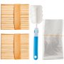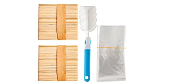 El paquete incluye 20 modelos de vasos, una tapa fija, un cepillo de limpieza, 100 soportes para palitos de helado y 100 bolsas de helado glaseado para facilitar el embalaje y almacenamiento.