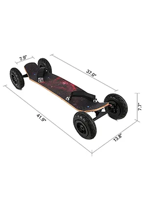 Construido con un marco de aleación de aluminio de 25,4 cm, eje de acero al carbono, 95A, amortiguador de rebote del 85 por ciento y rodamientos profesionales, nuestro monopatín puede resistir un fuerte impacto de deslizamiento y lidiar con una mayor velocidad.