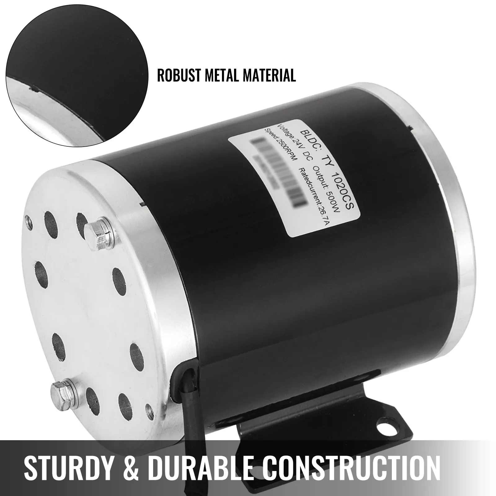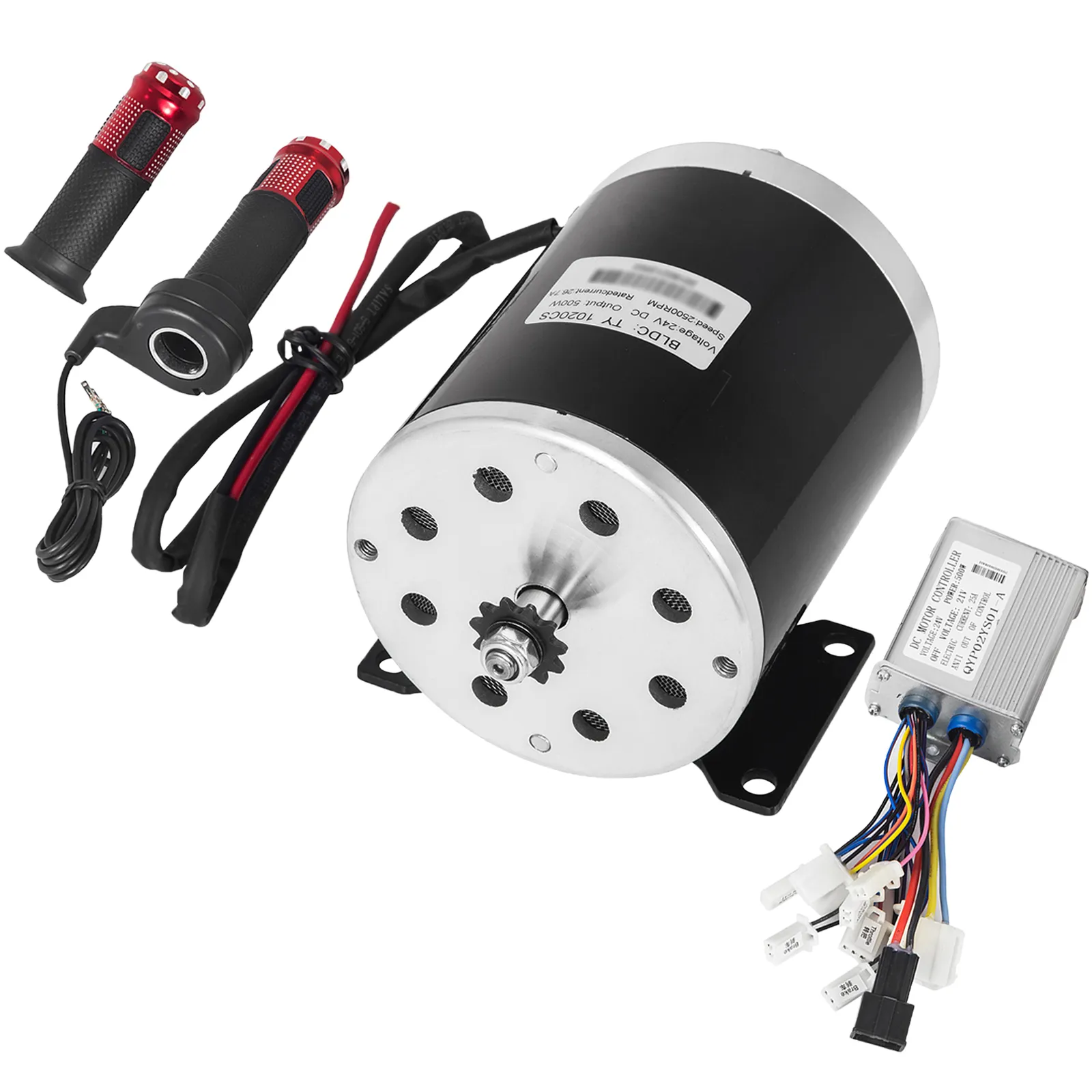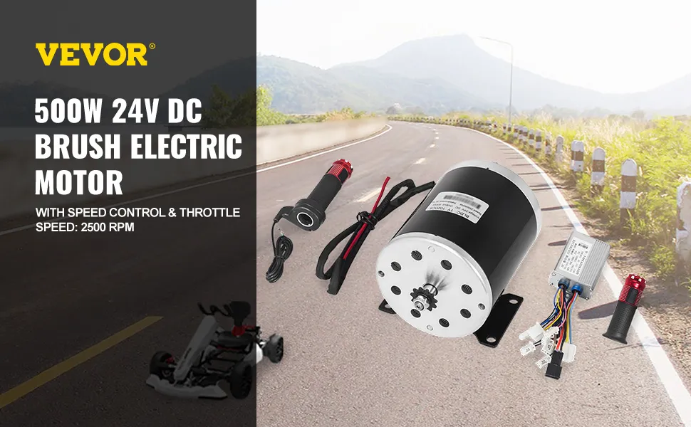 El listado es de unos 500 W 24 V DC de motor eléctrico. El motor de CC de imán permanente con cepillo tiene una velocidad nominal de 2.500 rpm, viene con controlador de velocidad y soporte de montaje, puede ser usado para mini bicicleta quad y Go-kart.
