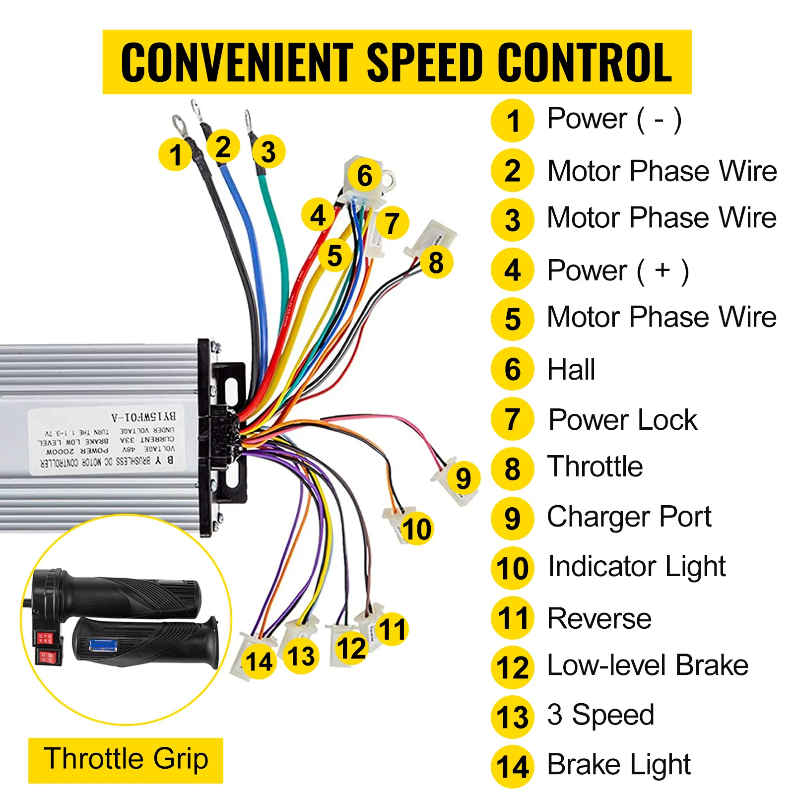48 V DC 1.800 W Motor Eléctrico sin Cepillado con Controlador y Pedal