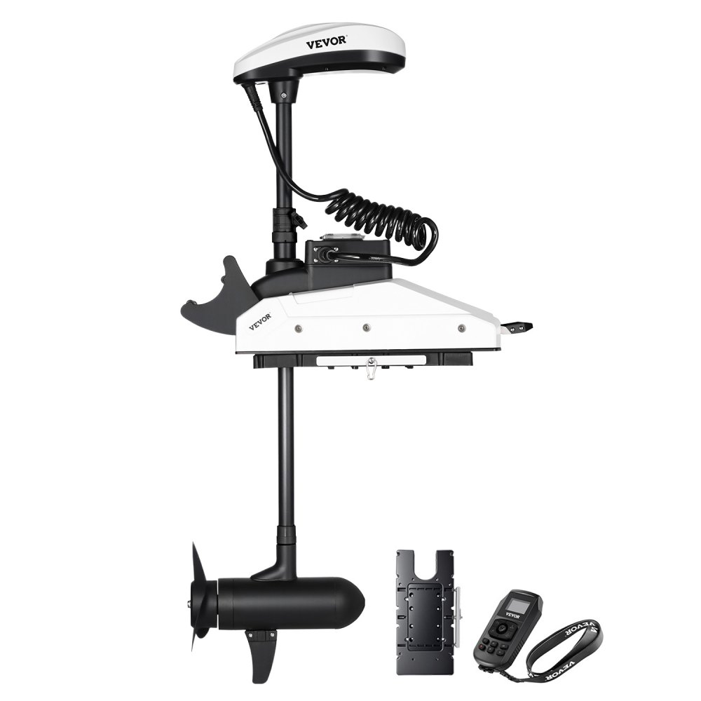 VEVOR Motor Eléctrico para Pesca de Arrastre, 25 kg de Empuje con GPS, para Barco de Agua Salada 10 Velocidades Montado en Proa con Control Remoto e Indicador de Batería LCD, 1245 x 680 x 210 mm
