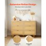 VEVOR Cómoda de Ratán con 6 Cajones, Tiradores y Patas Metálicas, Amplio Espacio de Almacenamiento, Mueble Moderno para Dormitorio, Salón o Recibidor, 120 x 39,5 x 85,4 cm, Color Madera Natural
