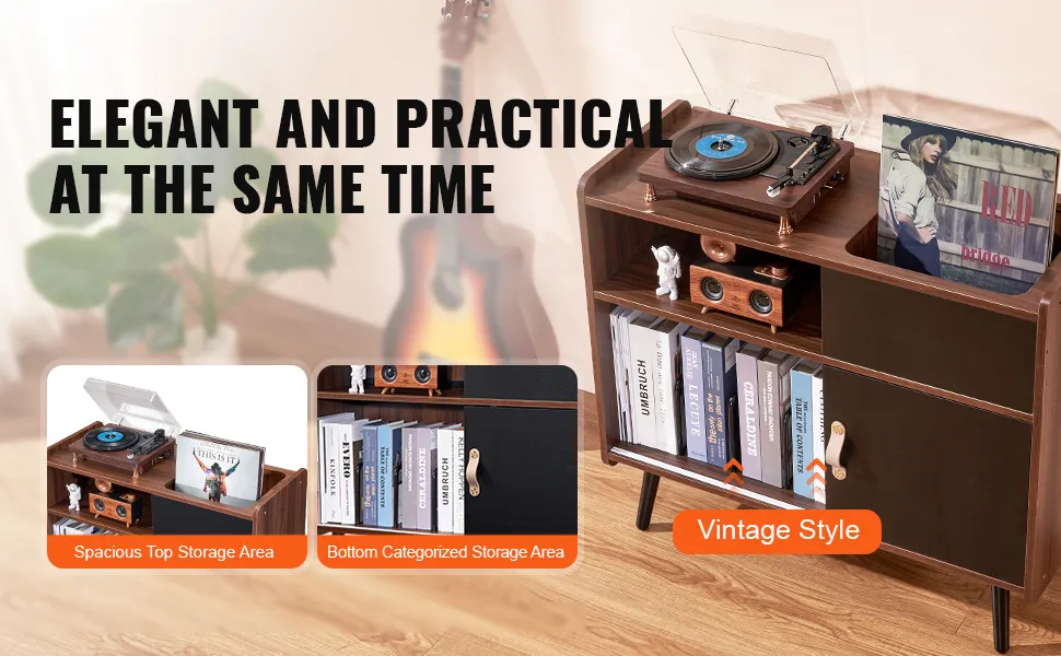 Los paneles de color marrón vintage no solo mejoran el atractivo estético sino que también brindan un soporte resistente. Este soporte para tocadiscos vintage proporciona un soporte resistente para su tocadiscos y al mismo tiempo agrega un toque elegante a su espacio.