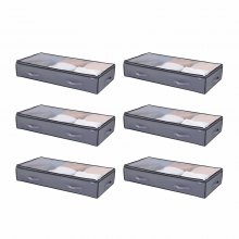 VEVOR Under Bed Storage with Clear Lids, 996 x 500 x 180 mm, 90L Large Underbed Clothes Storage Containers, Low Profile Under Bed Drawer Shoe Organizer Bins Box for Blanket Shoe Bedroom, 6 Pack