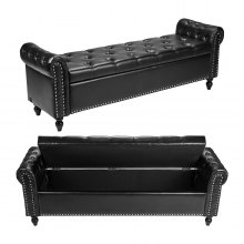 VEVOR Banco de Cuero con Botones, Banco Tapizado de Cuero Sintético 460 x 1660 x 560 mm con Almacenaje, Brazos Enrollados y Patas de Madera Maciza, Cojín de Espuma, para Sala de Estar, Marrón