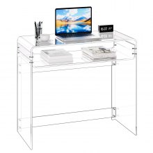 VEVOR Acrylic Table, 2 Tiers Clear End Table with Storage Shelf, Modern Rectangle Acrylic Side Desk, Transparent Thick Desk Nightstand for Bedroom, Office, Living Room, 40 x 85 x 75 cm (Clear)