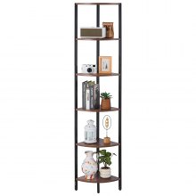VEVOR 6 Tier Corner Shelf, Tall Corner Stand with LED Light, Wall Shelves Tower Storage Organizer with Metal Frame & Wooden Shelves, Narrow Display Book Shelf Rack for Bedroom, Living Room, Office