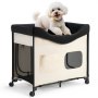 VEVOR Elevated Lounge Pet Bed, Foldable Bunk Dog Bed with 600D Oxford Cloth and Dutch Velvet, Portable Raised Cot with Wheels, Side Storage Bags, and Carry Bag for Cats & Dogs, L, Beige