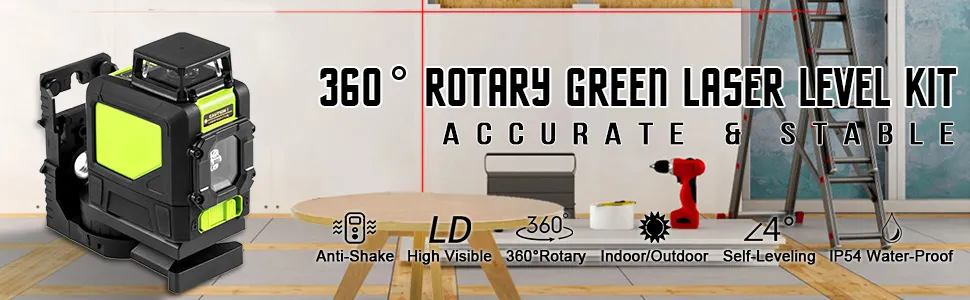 Este es un kit láser rotativo preciso para trabajos de construcción, que ha alcanzado un nivel industrial y puede emitir haces verdes claros para escanear. Tiene una distancia de trabajo de 30 m y un diseño giratorio de 360 °, alinea toda su área de trabajo.