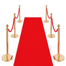 VEVOR Stanchion Post, 8 Pcs Crowd Control Barrier Set with Red Carpet, 6 Red Velvet Ropes, Stainless Steel Gold Stanchion Post Queue with Hollow Base for Theater, Party, Wedding, Exhibition (Gold)