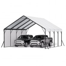 VEVOR Toldo Exterior para Coche 3,05 x 6,09 x 2,87 m Cochera Portátil Galvanizado Resistente, Resistente a los Rayos UV y al Agua Cobertizo de Almacenamiento para Coche, Barco, Motocicleta, Blanco