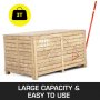bright red VEVOR prylever bar with rolling mechanism lifting a large wooden crate.