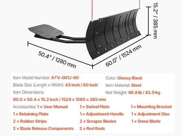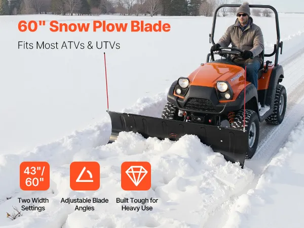 VEVOR Quitanieves, Kit de Pala de Nieves Ajustable de 109/152 cm, Fácil Desmontable, Quitanieves de Montaje Universal con Faldones de Goma Cuchilla de Acero Compatible con la Mayoría de UTV y ATV