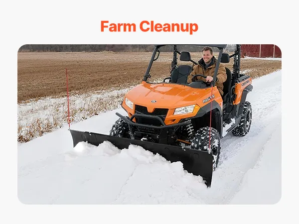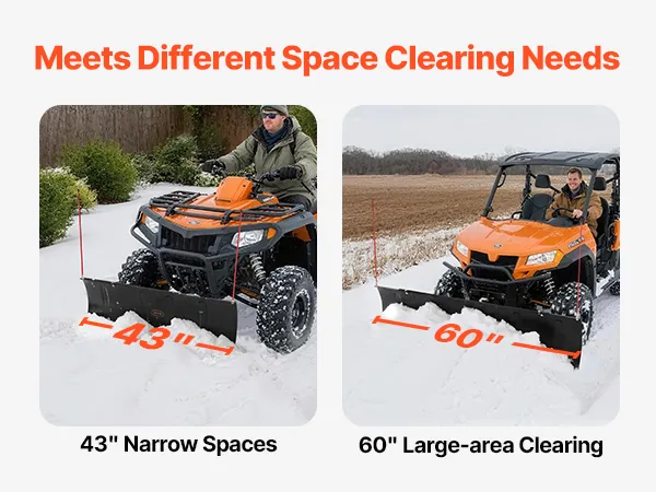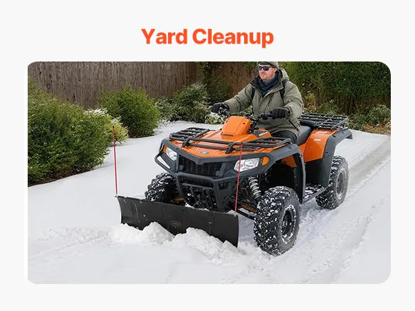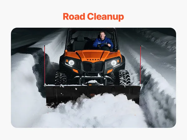 Versátil: El juego universal de quitanieves UTV es ideal para retirar la nieve de entradas de vehículos, caminos de tierra, estacionamientos y carreteras rurales. Le permite retirar más nieve en una sola pasada, aumentando la eficiencia del trabajo en diversos lugares