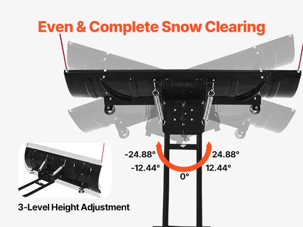 Nuestro quitanieves está diseñado para una amplia compatibilidad con vehículos e incluye un respaldo multiranura con tres opciones de montaje, apto para la mayoría de los modelos de ATV y UTV. Sus dos anchos ajustables (109/152 cm), junto con un control de ángulo de 5 niveles (±24,88°) y un ajuste de altura de 4 niveles, se adaptan a diversas condiciones.
