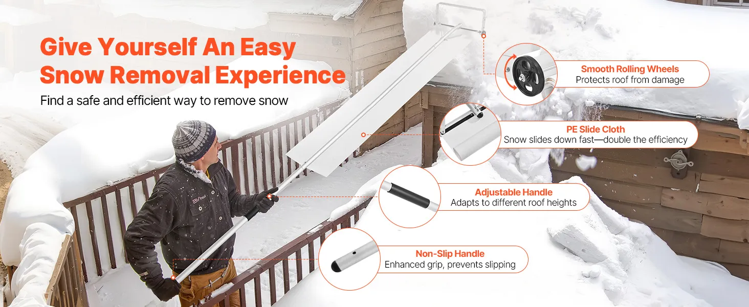 Con longitud ajustable, este rastrillo para nieve de techo le permite limpiar fácilmente la nieve acumulada sin el peligro de subir escaleras. Cuenta con rodillos suaves para evitar rayones y su mango antideslizante garantiza un agarre seguro en superficies resbaladizas.