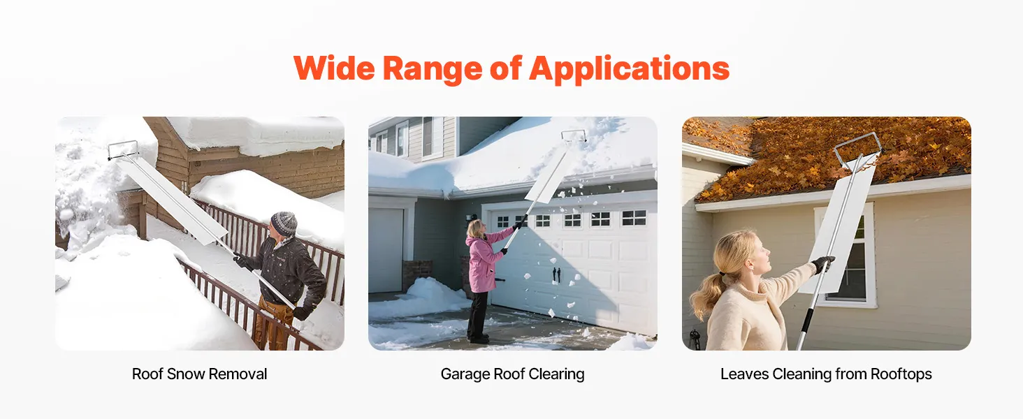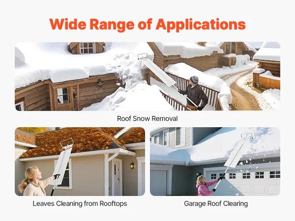 Nuestro rastrillo de techo es una herramienta multiusos que se adapta eficazmente a diversas situaciones. Ya sea nieve u hojas caídas en la casa o el techo del garaje, limpia eficazmente, haciendo que la vida invernal sea más tranquila y relajada.