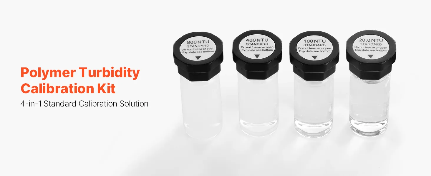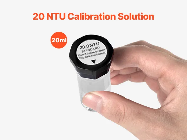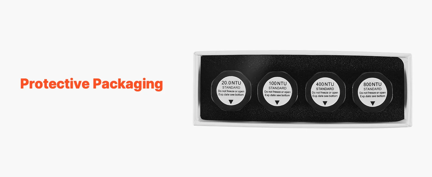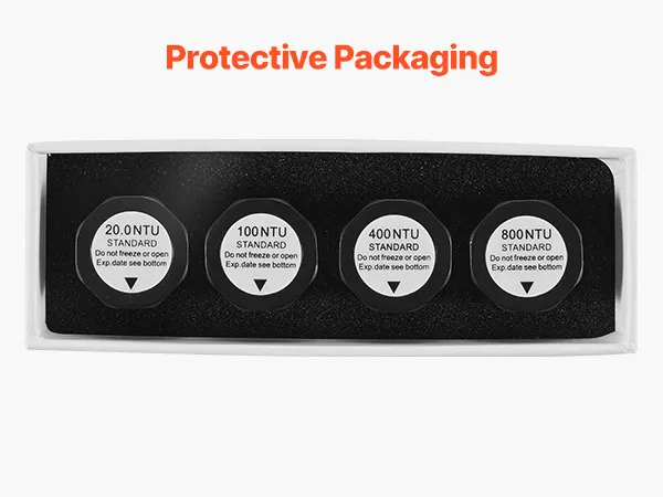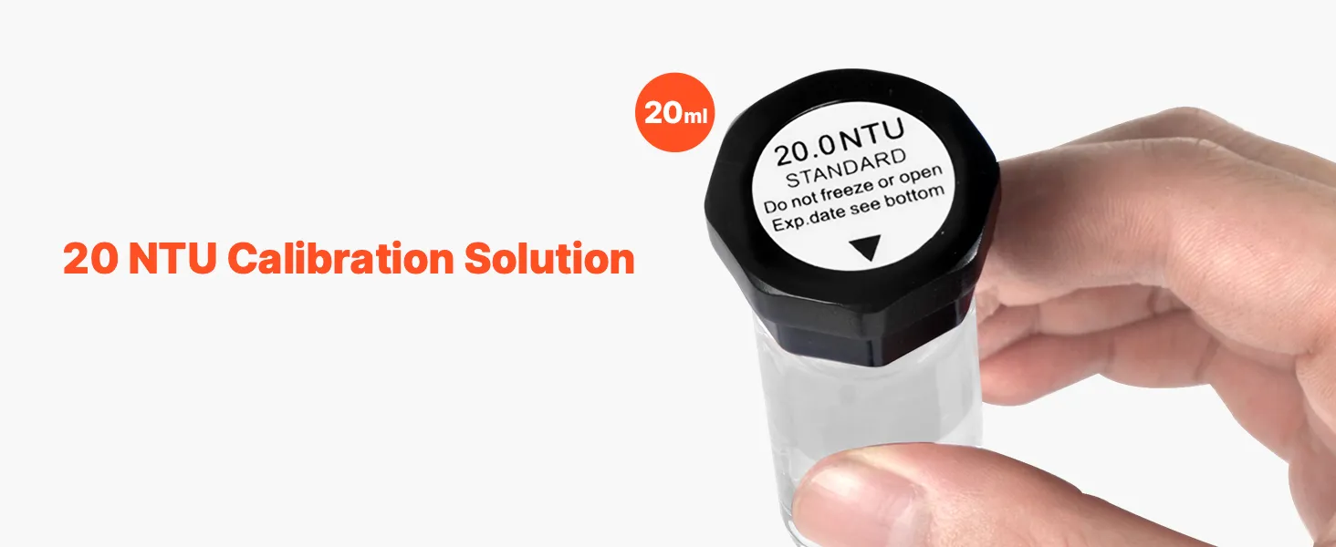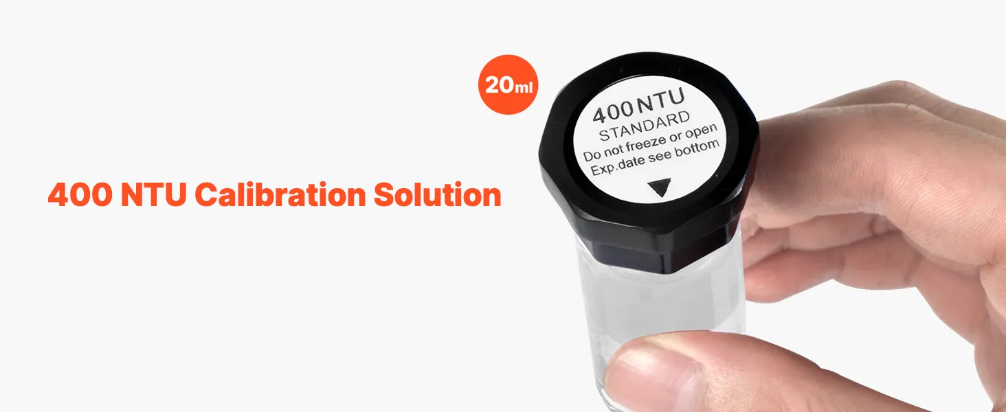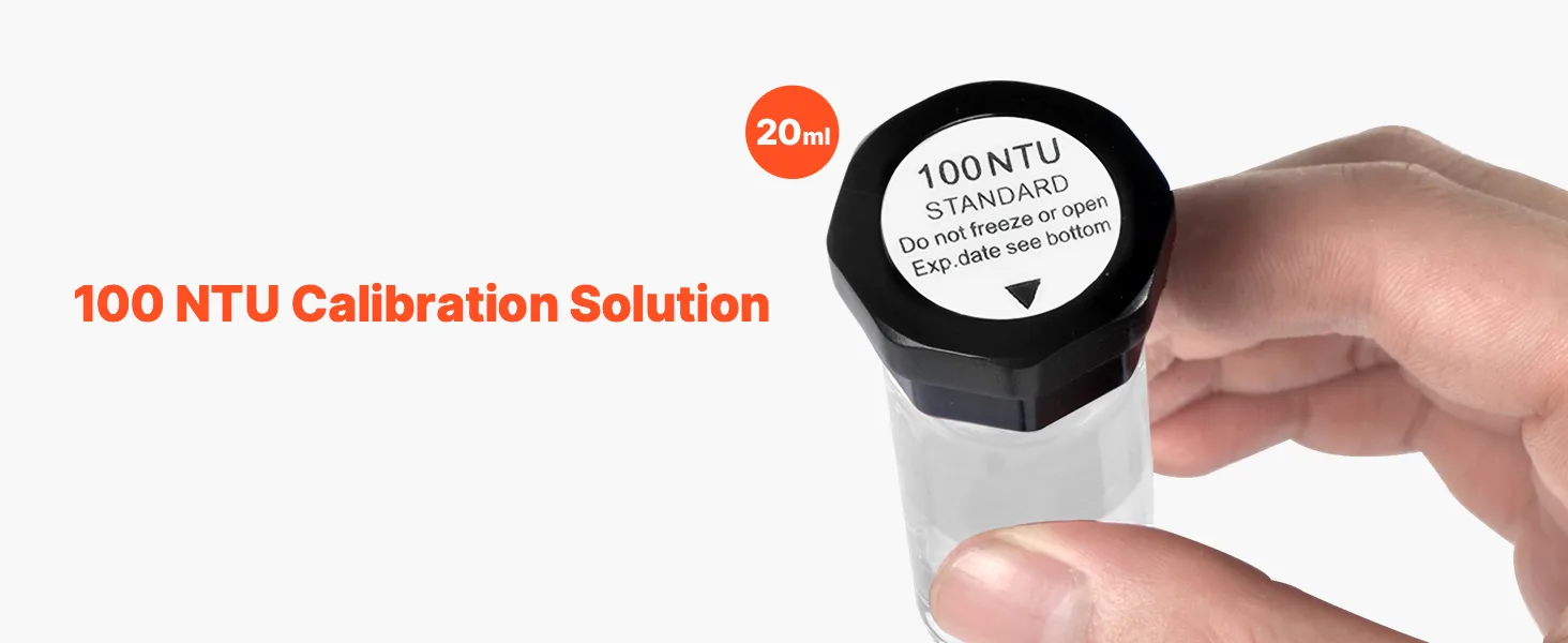 Listo para usar: No requiere preparación: simplemente retire nuestra solución de calibración estándar de turbidez y úsela para una calibración rápida en segundos