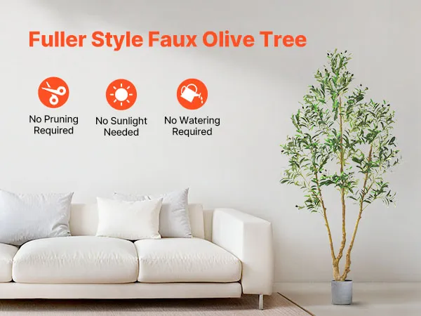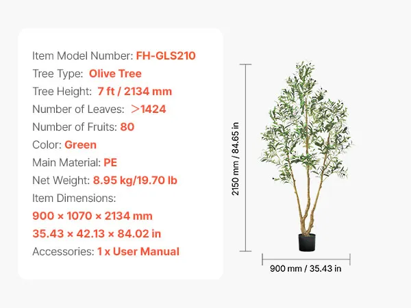 VEVOR Árbol Artificial de Olivo Alto de 2134 mm Planta Artificial de PE para Decoración Árbol Verde Planta Falsa para Hogar, Oficina, Hotel, Centro Comercial, Interior y Exterior, Maceta Negra