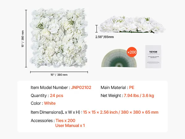 Área de cobertura de 37,5 pies cuadrados: Cada juego de pared de flores artificiales incluye 24 paneles, que cubren un área total de 37,5 pies cuadrados (aprox. 3,5 metros cuadrados). Mida su espacio con anticipación para determinar la cantidad requerida y garantizar el ajuste perfecto para la cobertura deseada