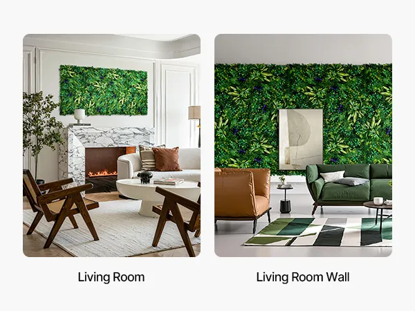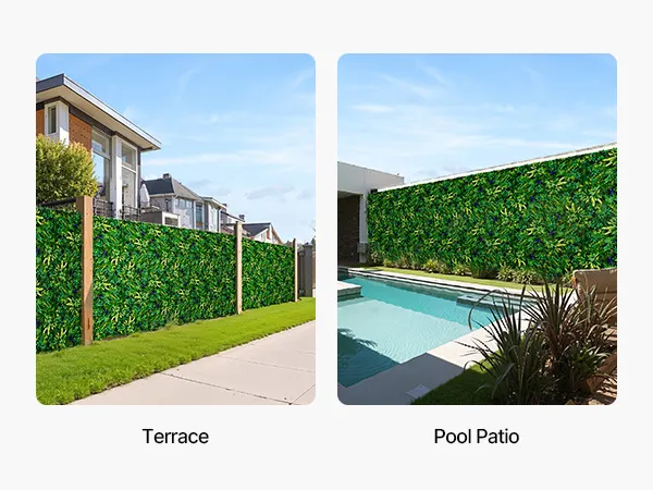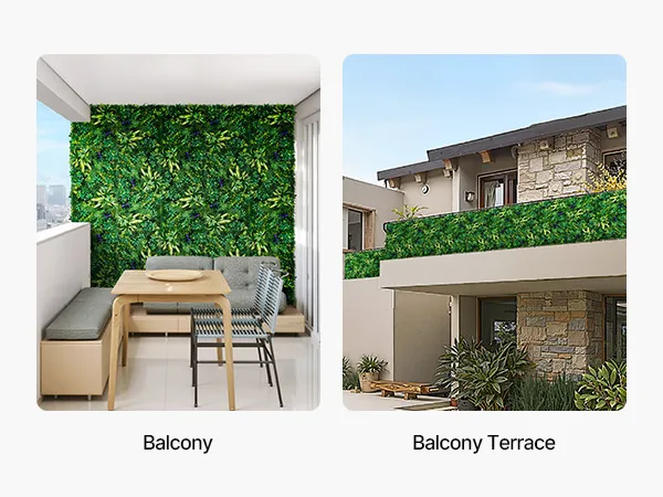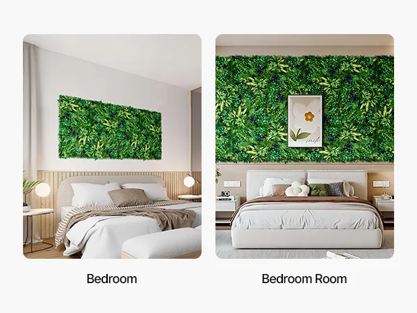 Versátil para múltiples escenarios: Adecuado tanto para espacios interiores como exteriores, este muro vegetal se puede utilizar para decorar su balcón, patio, jardín o paredes interiores. También es una opción perfecta para celebraciones de temporada, lo que le permite realzar los fondos festivos o los espacios para eventos