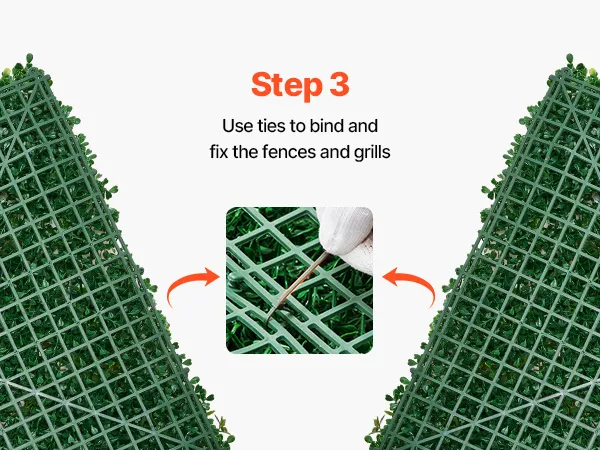 Instalación rápida: El sistema de conectores entrelazados permite un montaje rápido y seguro de su pared vegetal. Además, incluimos 100 bridas de cortesía para que pueda sujetar fácilmente los paneles a cercas u otras estructuras. La pared vegetal es flexible y fácil de cortar, lo que la hace perfecta para diseños de bricolaje que se adapten a sus necesidades específicas