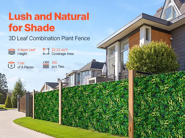 Cobertura de privacidad mejorada: Con un respaldo de cuatro capas y alturas de hojas que varían de 1,8 a 3,54 pulgadas, el diseño denso en capas garantiza que no haya espacios, lo que crea un aspecto natural y uniforme. Una vez instalado, proporciona una excelente cobertura para una mayor privacidad