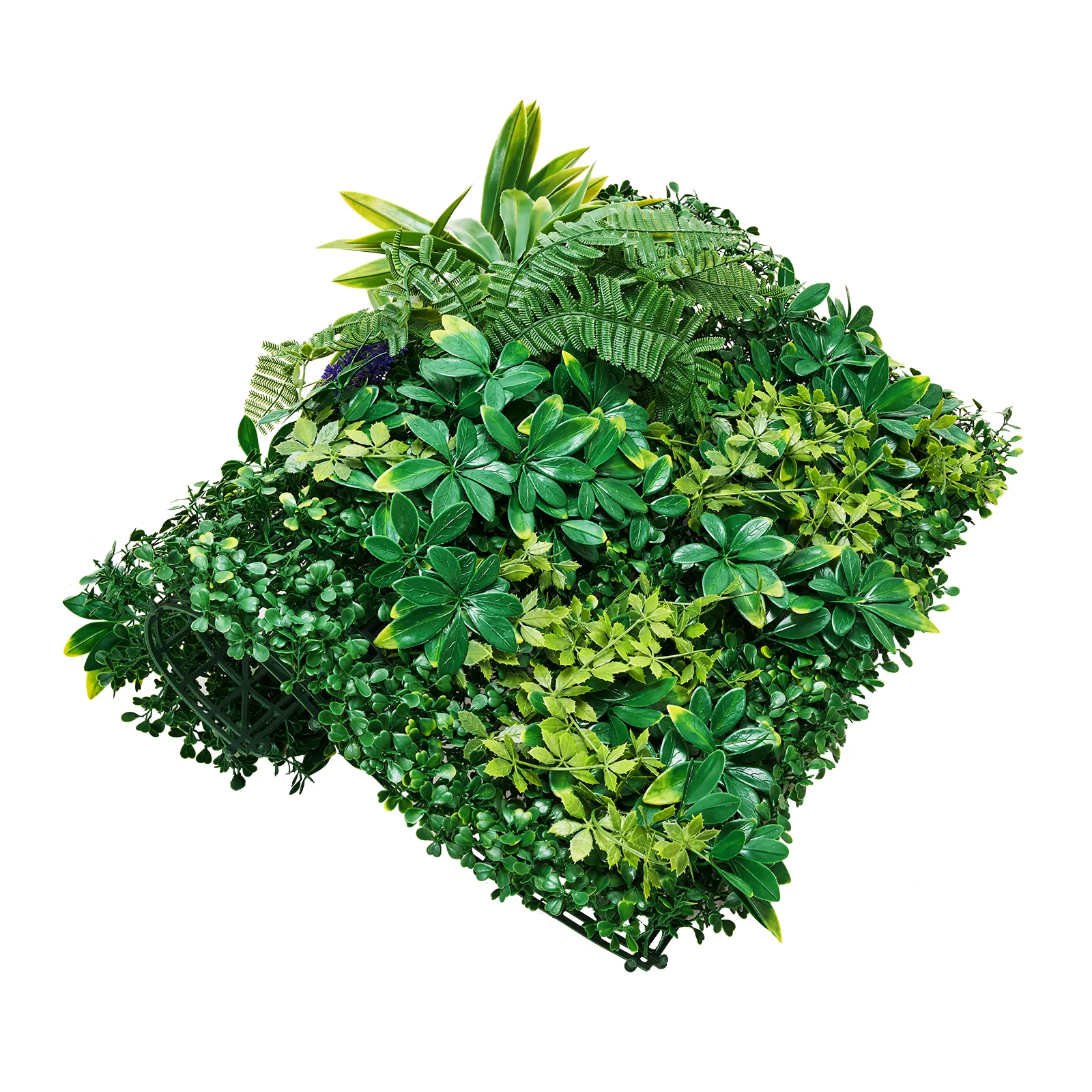 Hojas con textura 3D: Fabricadas con material de polietileno, la combinación 3D de hojas ofrece un aspecto más realista. El degradado natural de tonos verdes, combinado con una variedad de tipos de hojas, realza la riqueza general y el diseño de múltiples capas de la pared vegetal, lo que la hace realista y visualmente atractiva
