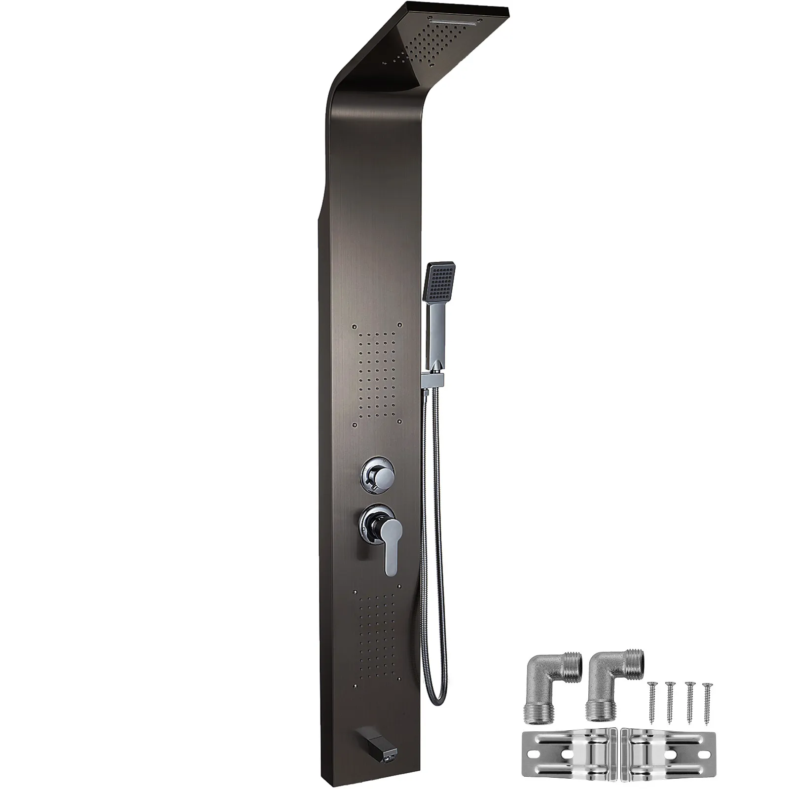• 【MARCO DE ACERO INOXIDABLE ROBUSTO】- Color: negro; el panel grueso de acero inoxidable 304, los conectores de latón y las mangueras a prueba de explosiones hacen que este panel de ducha sea negro resistente a altas temperaturas. El diseño integral lo hace a prueba de fugas y garantiza una calidad excelente. La superficie con recubrimiento de polvo es antioxidante, anti-arañazos y es fácil de limpiar.