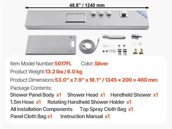 Gran compatibilidad: Esta columna de ducha de pared es fácil de instalar. Equipada con un conector de 1/2 pulgada, es compatible con la mayoría de las tuberías existentes en los hogares estadounidenses, sin necesidad de modificar la estructura del baño
