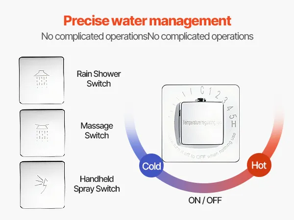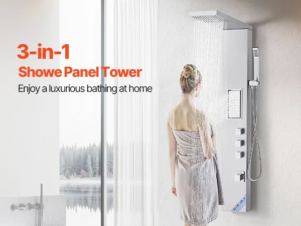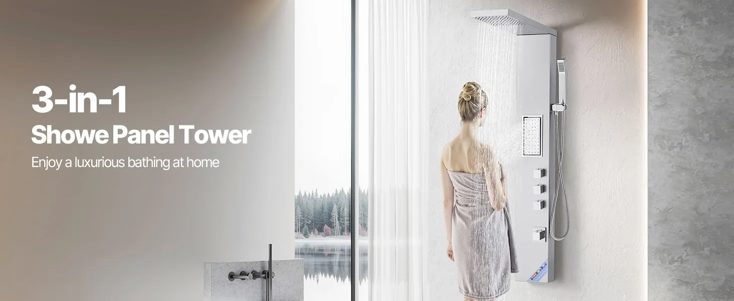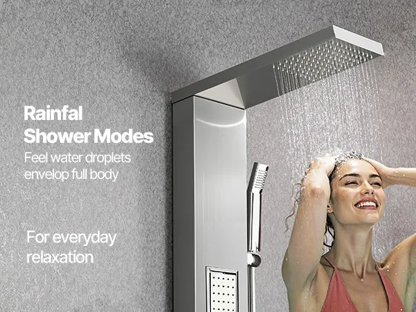 Sistema de ducha 3 en 1: Este sistema de columna de ducha incluye un sistema de lluvia, una amplia zona de masaje y un cabezal de ducha de mano. Satisface diversas necesidades, desde un enjuague rápido hasta una relajación profunda. Los 3 modos se controlan de forma independiente y pueden usarse simultáneamente cuando la presión del agua es suficiente