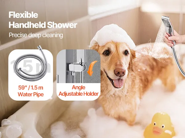 Ducha de mano flexible: El cabezal de ducha de lluvia de mano viene con una manguera de 59 pulgadas y un soporte giratorio, lo que ofrece un uso fácil y un movimiento sin restricciones mientras se ducha