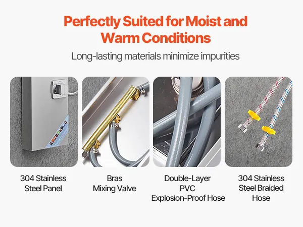 Flujo de agua suave y estable: La exclusiva estructura de la válvula mezcladora de latón proporciona una alta resistencia a la presión del agua y previene fugas y la oxidación. Las boquillas de silicona de la columna de ducha de acero inoxidable son fáciles de limpiar