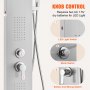 Sistema de panel de ducha VEVOR que muestra un interruptor de luz LED, un interruptor de modo y un interruptor de mezcla.