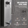 Sistema de panel de ducha VEVOR con acero inoxidable, boquillas de silicona, válvula de latón y mangueras de PVC.