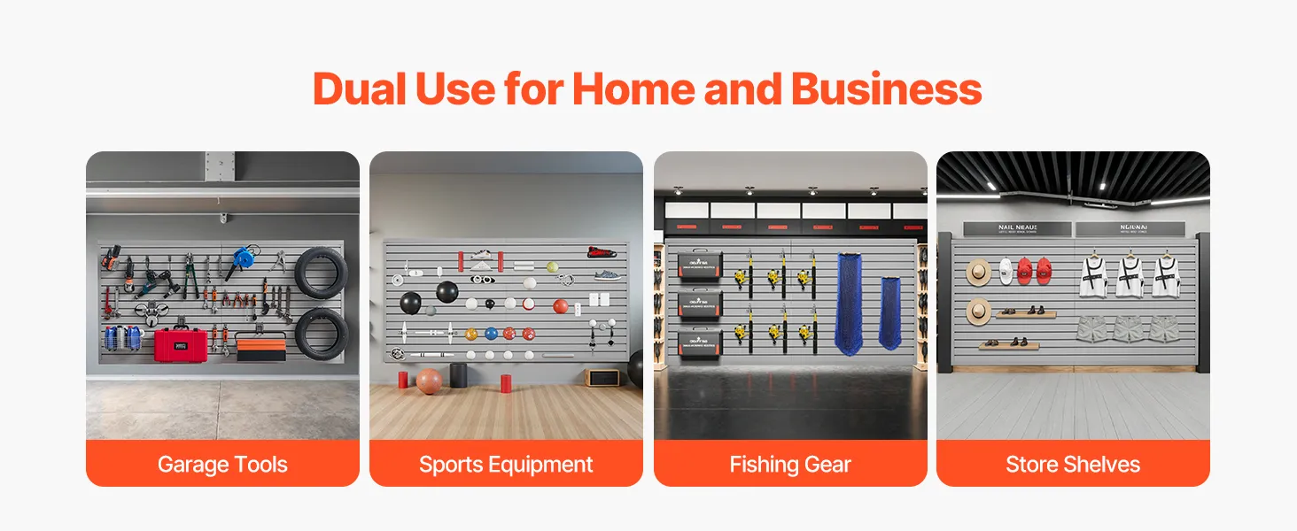 Este panel de pared de listones combina perfectamente con una amplia gama de entornos, incluidos garajes, almacenes, jardines y tiendas, y permite ahorrar espacio, almacenar de forma eficiente y exhibirlo con estilo.