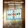 VEVOR Panel de Vidriera Colgante para Ventana 664 x 402 mm Panel de Vitral Colorido Horizontal Rectangular Marco de Metal con Cadena Fácil de Limpiar para Decoración de Cocina, Hogar, Cafetería