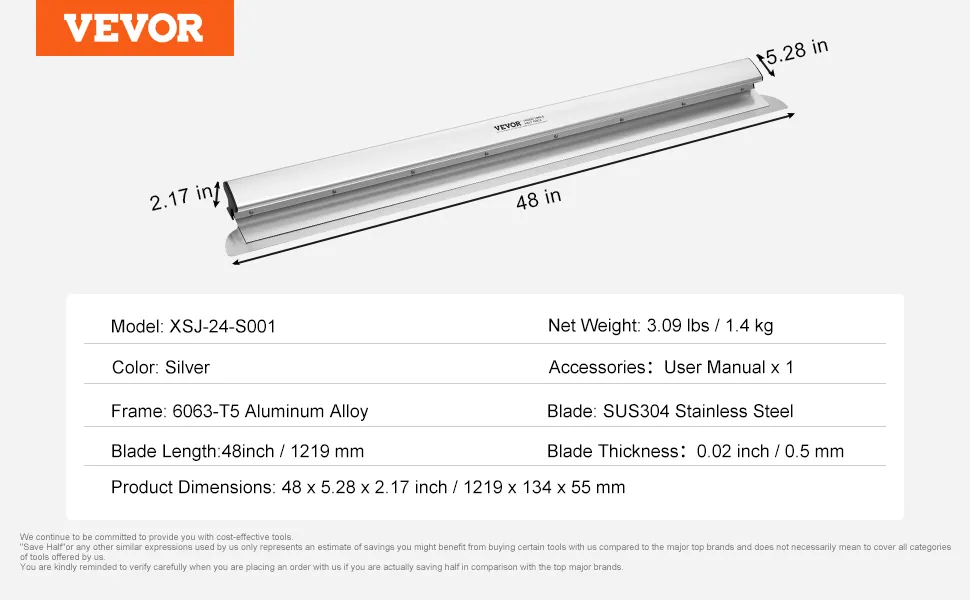 La cuchilla desnatadora VEVOR cuenta con un cuerpo de aleación de aluminio. Este material proporciona un excelente rendimiento y durabilidad. La aleación es liviana, lo que la hace fácil de manejar. También garantiza que la herramienta sea resistente y pueda soportar un uso intensivo. La combinación de aluminio y acero inoxidable, junto con una construcción sólida, hace que esta herramienta sea confiable para proyectos profesionales y de bricolaje. Los materiales de alta calidad garantizan que el instrumento funcione bien bajo presión. Es una inversión valiosa para cualquiera que busque una herramienta confiable y de alto rendimiento.