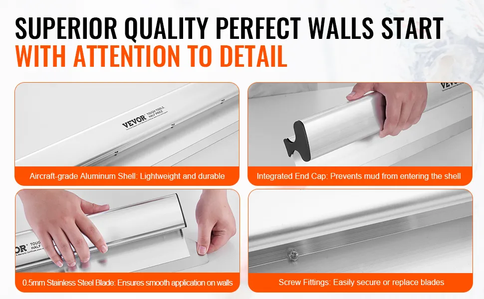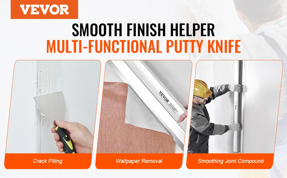 La cuchilla para alisar paneles de yeso VEVOR está diseñada para aumentar la velocidad de acabado de los paneles de yeso. Reduce el tiempo de trabajo a la mitad, lo que le permite completar los proyectos más rápido. La amplia longitud de 48 pulgadas de esta cuchilla garantiza una cobertura suave y uniforme en áreas grandes como techos y paredes. Resultados eficientes: la herramienta proporciona eficiencia, lo que conduce a mejores resultados. Puede lograr un acabado de nivel 5, que es perfecto y suave. Esto la convierte en un complemento esencial para su kit de mejoras para el hogar. Nuestro diseño ayuda a obtener resultados consistentes, por lo que cualquier persona que busque mejorar su trabajo de paneles de yeso se beneficiará de esta herramienta.