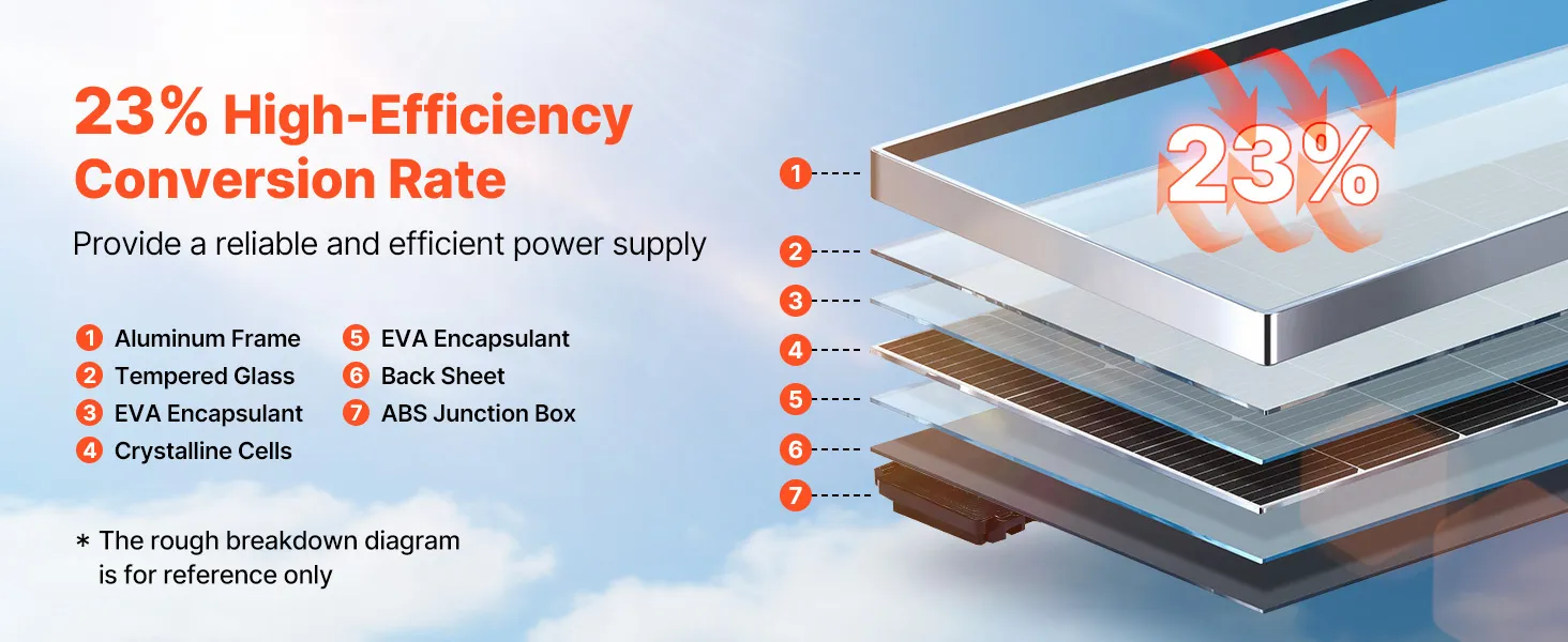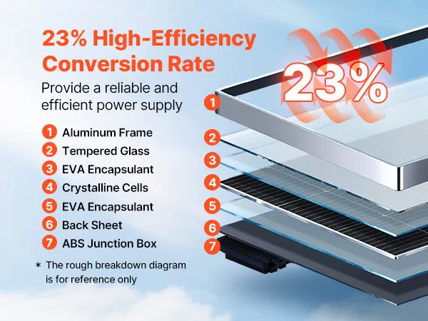 Disfrute de energía confiable bajo demanda con nuestro panel solar monocristalino de alta eficiencia. Con una tasa de conversión eficiente de ≥23 %, proporciona una salida de energía constante y estable para mantener sus dispositivos alimentados.