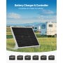 Excellent Durability: This IP65 waterproof solar panel battery charging kit operates reliably in extreme conditions from −40℉ to 185℉. Built to withstand wind, rain, snow, and sunlight exposure, it's ideal for long-term outdoor use
