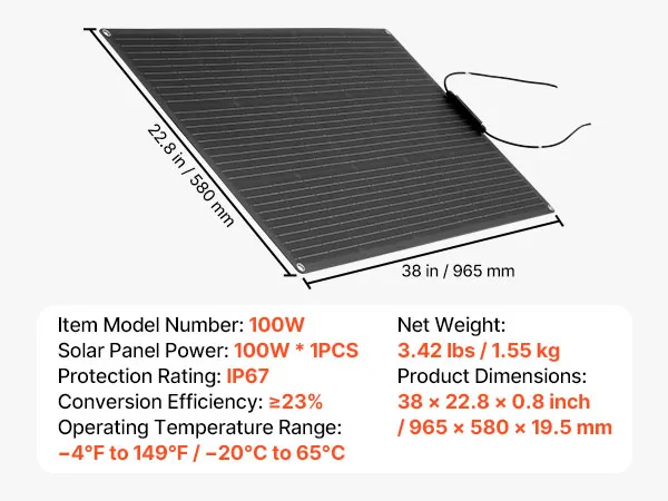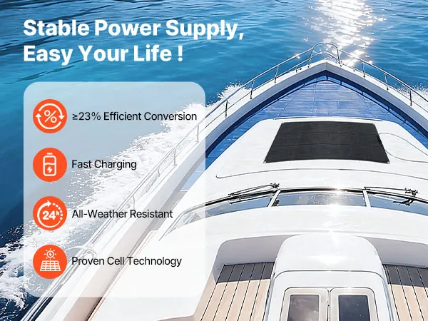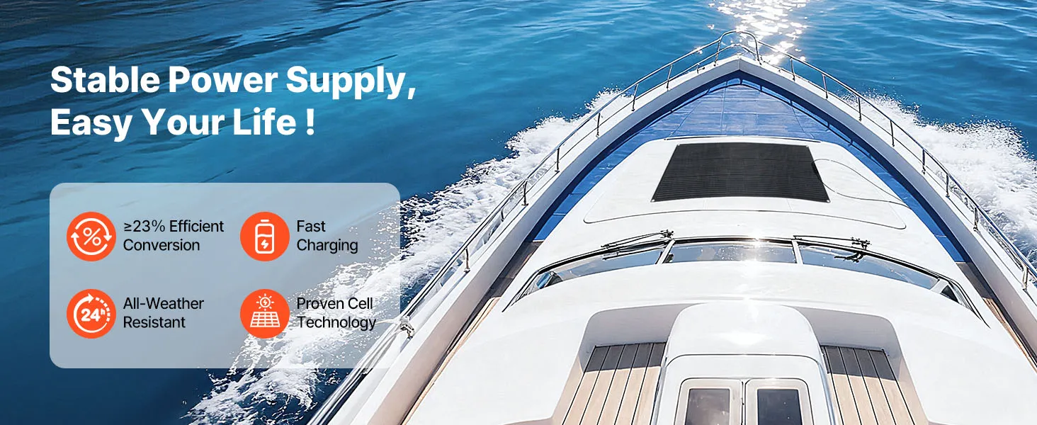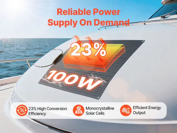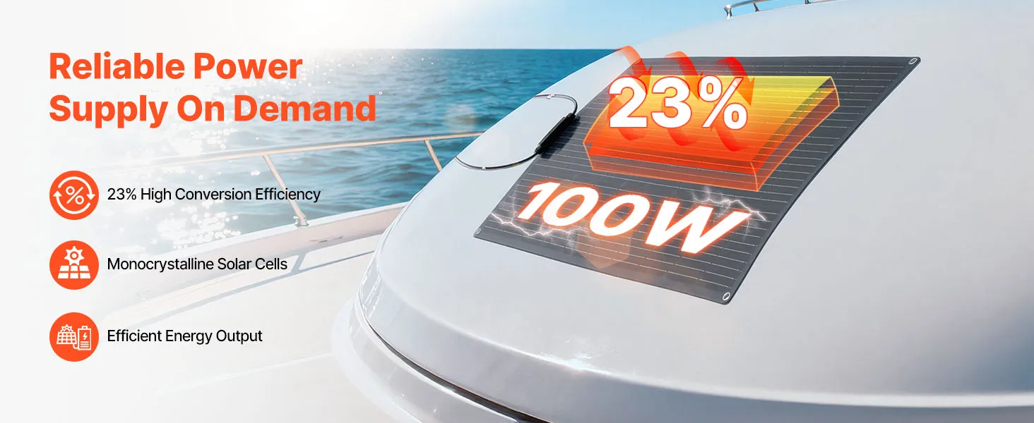 Eficiencia superior: Con células monocristalinas premium con una eficiencia de conversión ≥23 %, este panel solar mono semiflexible de 100 W convierte más luz solar en energía utilizable, lo que garantiza una generación de energía eficiente para una salida de energía constante y una carga rápida de dispositivos