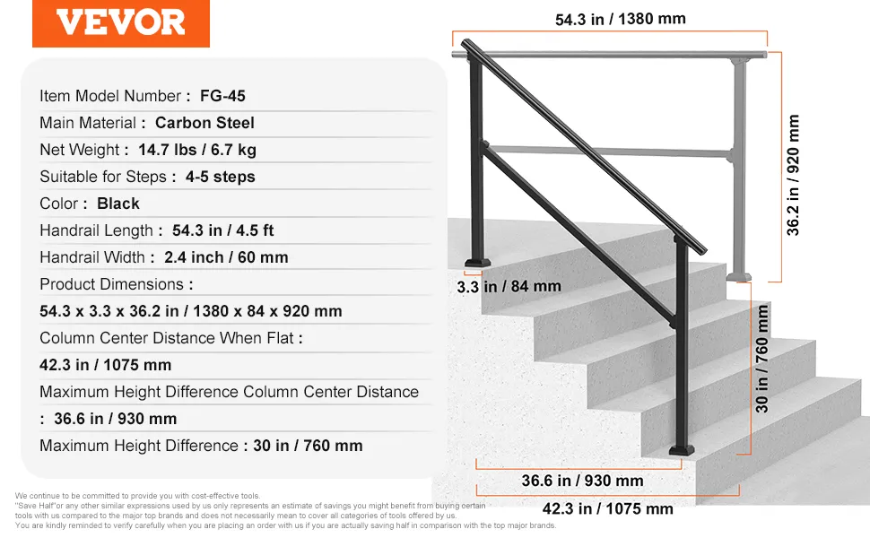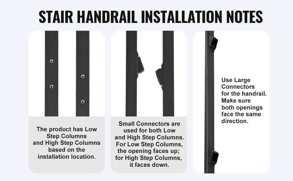 Capacidad de carga resistente de 100 kg: Esta barandilla de escalera está diseñada para durar y brinda seguridad confiable para personas mayores y niños. El mango grueso garantiza comodidad y seguridad, permitiendo que todos. CONSEJOS IMPORTANTES: Antes de comprar, mida la distancia máxima entre ejes y la diferencia de altura de sus escaleras para asegurarse de que coincidan con las dimensiones del pasamanos. De lo contrario, el pasamanos podría no instalarse.