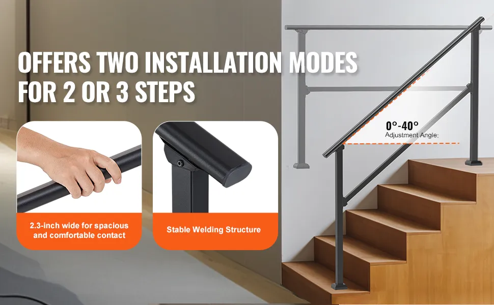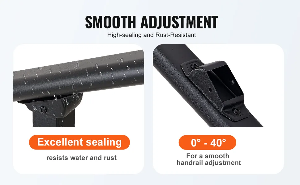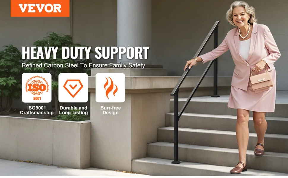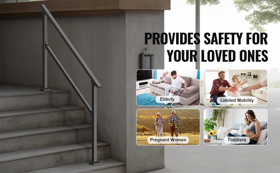 VEVOR Barandilla de Escalera para Pasamanos de Escalera de 4-5 Escalones con Kit de Instalación Tubo Cuadrado de Acero al Carbono para Personas Mayores, Escalones de Concreto, Porche, Patio, Negro