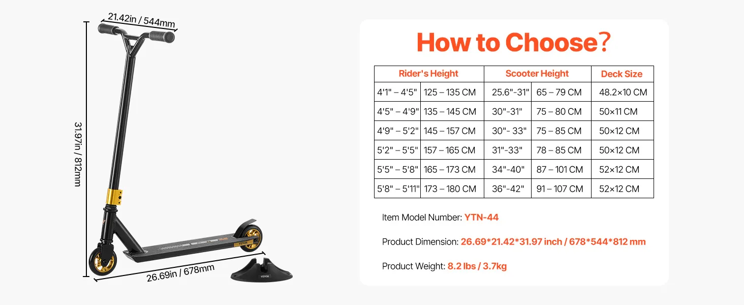 Amplia aplicación: Diseñado tanto para uso en interiores como en exteriores, este patinete ligero con plataforma de aleación es perfecto para parques de patinaje, rieles, carreteras, patios traseros y más. Dimensiones del producto: 678 x 544 x 812 mm. Ideal para adolescentes y niños que buscan un patinete profesional