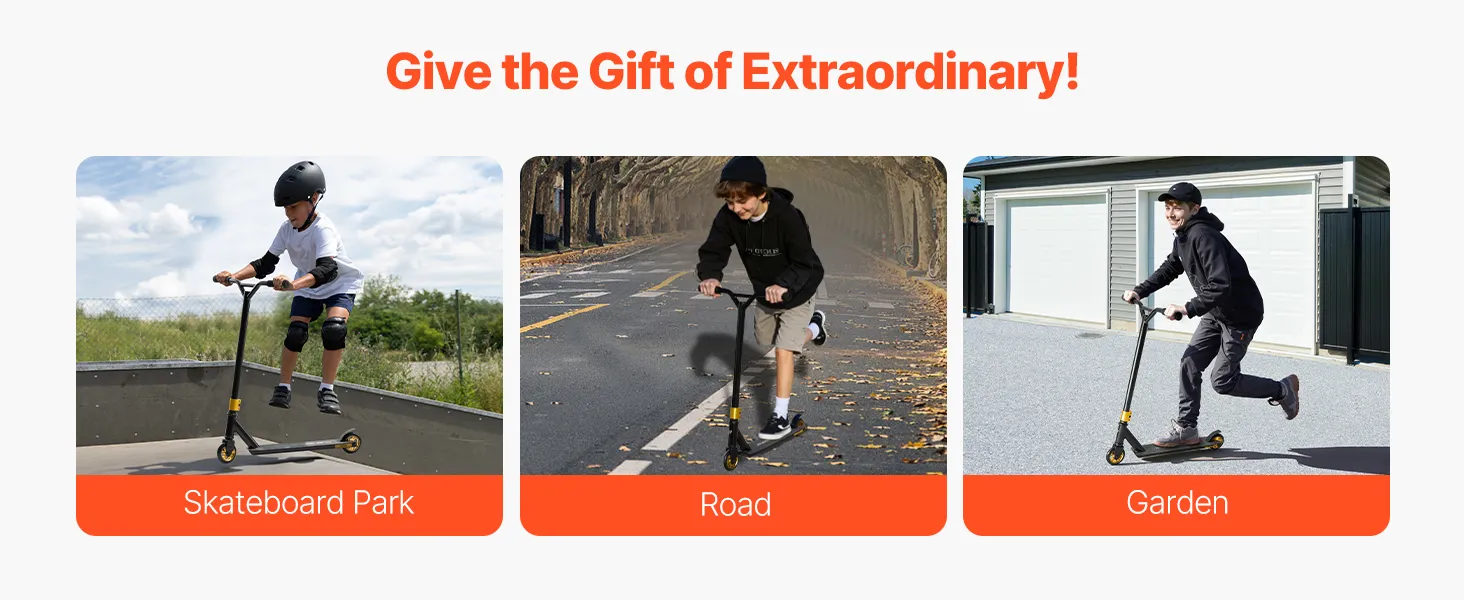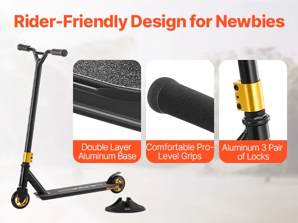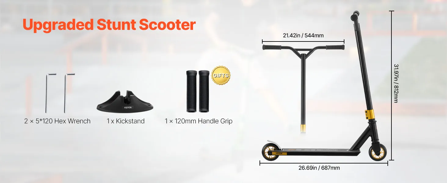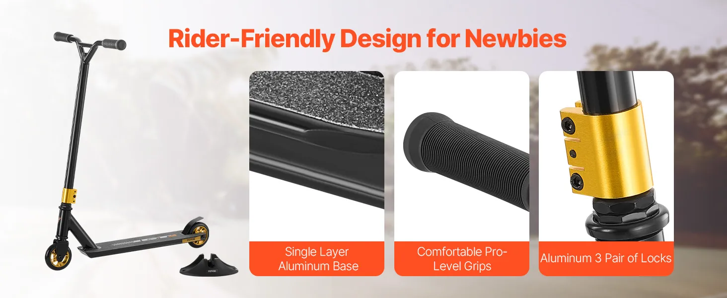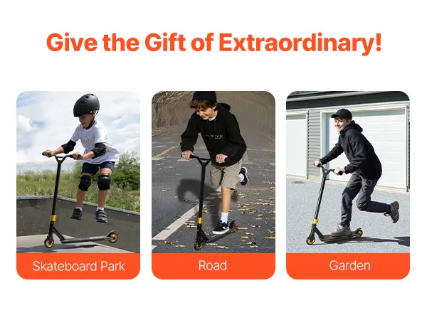 Perfecto para principiantes e intermedios: Este patinete de acrobacias está diseñado específicamente para principiantes e intermedios. Ya sea que se deslice por la acera o se prepare para andar en un parque de patinaje, este patinete de acrobacias es perfecto. Totalmente equipado para comenzar a aprender y dominar el deporte fácilmente
