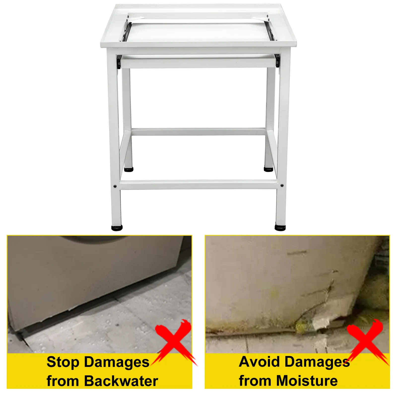 El pedestal para lavadora no solo hace que el trabajo sea más manejable, sino que también protege su máquina de los daños causados por el remanso del barranco, las inundaciones (hasta 25,6 pulgadas) y la humedad del suelo.